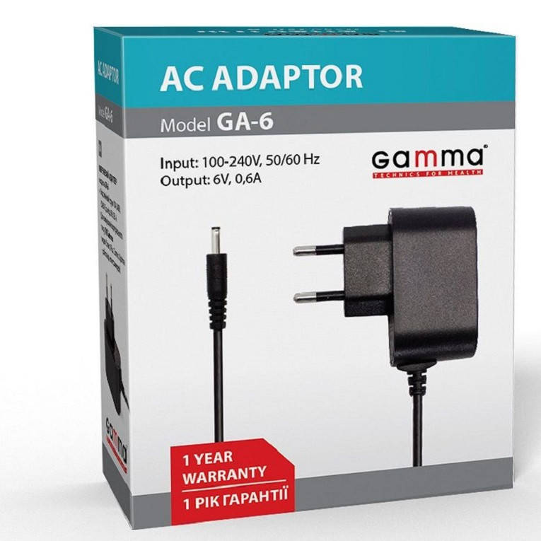 Адаптер Gamma GA 60 обеспечивает преобразование переменного напряжения 110-240V с частотой 50/60Hz в постоянное напряжение 6V 0,6A.