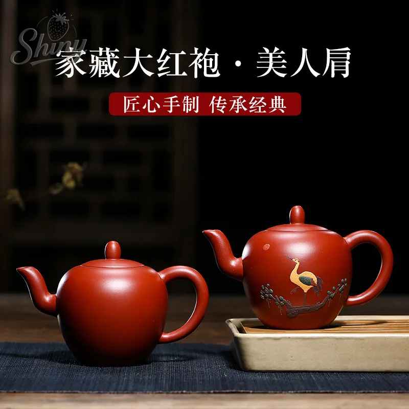 Оригинальный большой красный халат ручной работы, фиолетовый песочный горшок, красивый чайник на плечо, небольшой вместительный чайный сервиз для кунг-фу