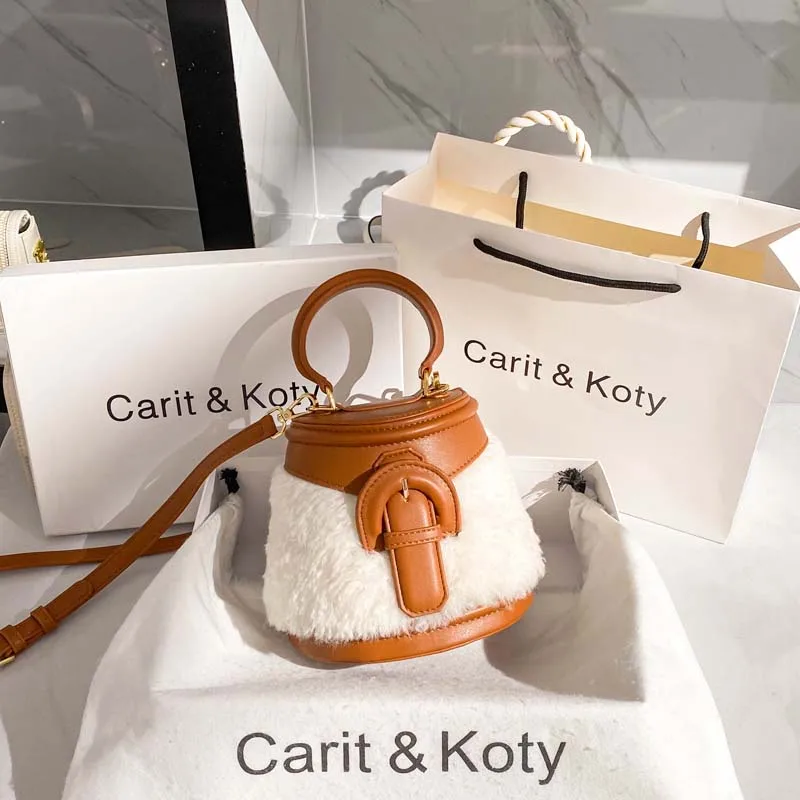 Осеннее Новое Повседневное платье из овечьей шерсти, подходящая ко всему Портативная сумка-мешок, круглая сумка-мессенджер через плечо, мод...