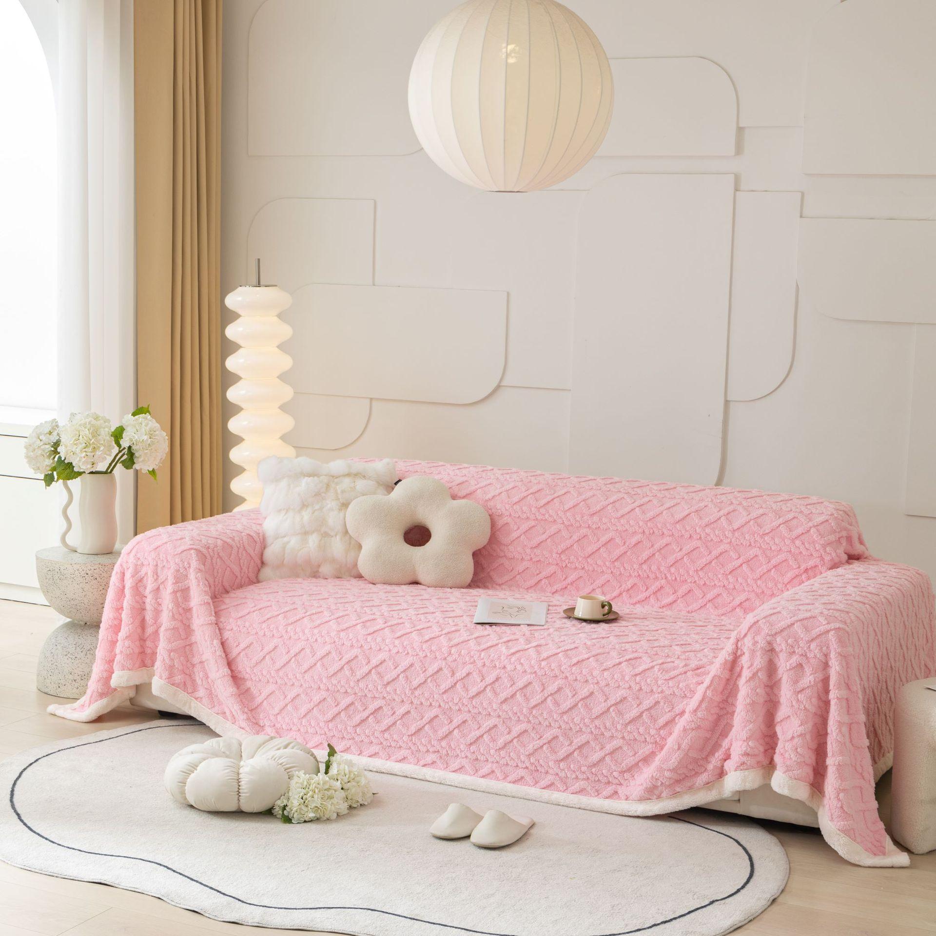 Осеннее и зимнее трехмерное жаккардовое хлопковое бархатное полотенце для дивана, двухстороннее плюшевое моющееся простое полотенце для дивана 70*100