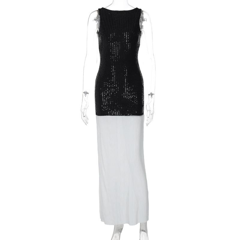 Осеннее сексуальное платье без рукавов с открытой спиной и пайетками в стиле плиссе, длинное, в уличном стиле, плиссированное L чёрный