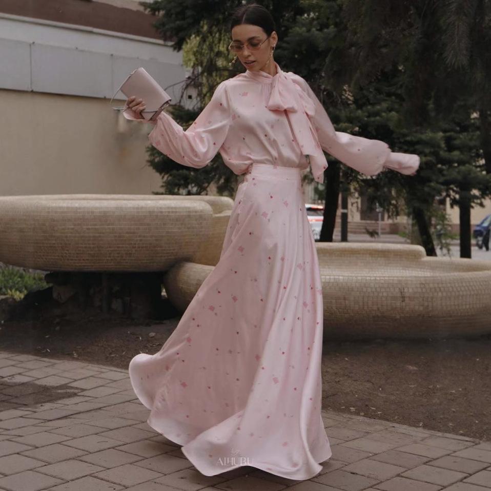 Осеннее французское цветочное жаккардовое атласное пальто длинное женское платье костюм XXXL розовый
