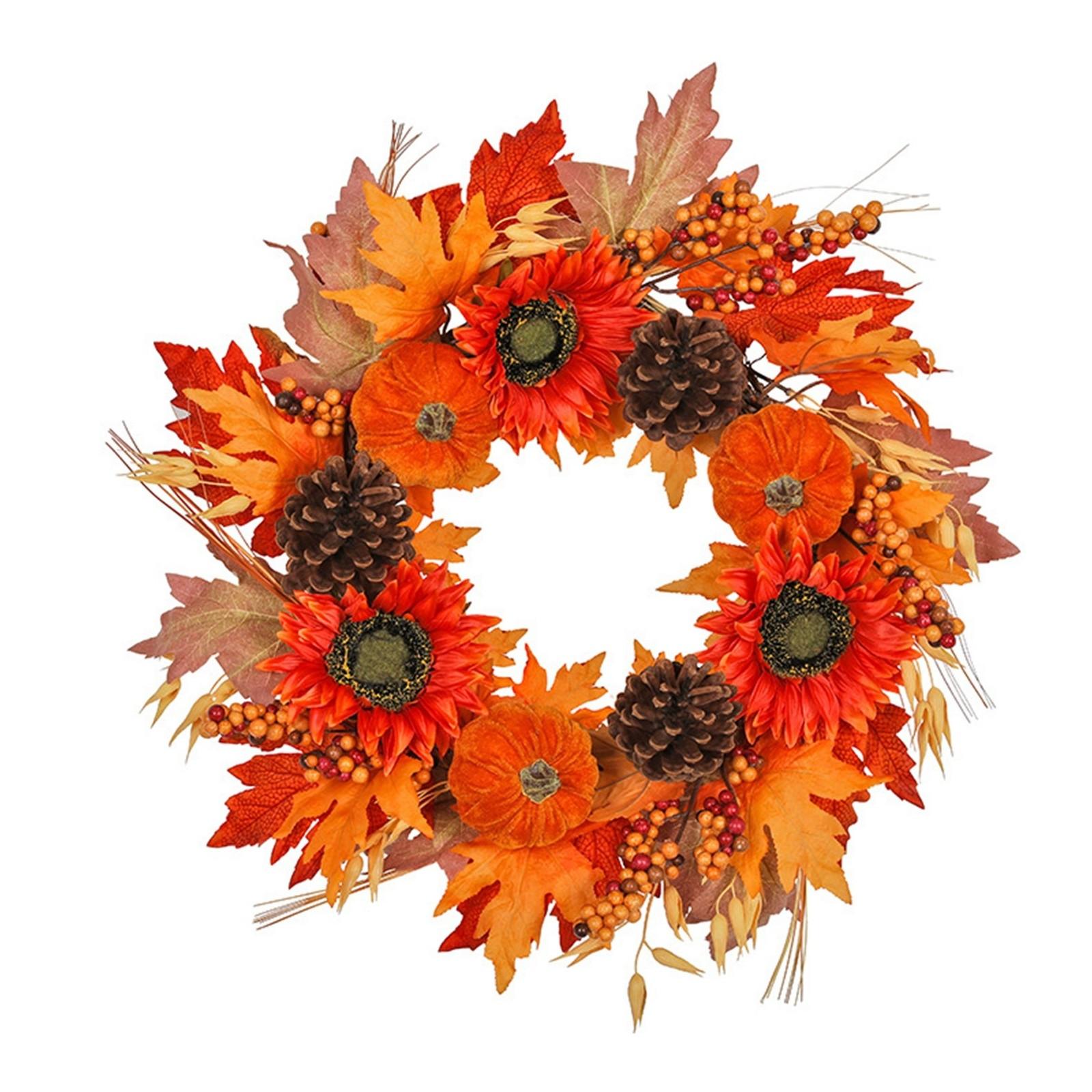 Осеннее цветочное кольцо для открытого сада, цветочное кольцо на входной двери, добро пожаловать для украшения вешалок на входной двери One Size жёлтый