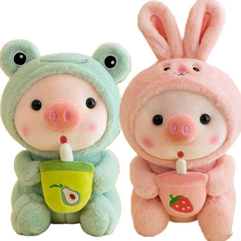 25cm Cute Pig Cosplay Unciorn Frog Tiger Bunny Boba Plush Toy Pig Doll Toy Girl Plushies Sleep Ragdoll Doll Birthday Gift