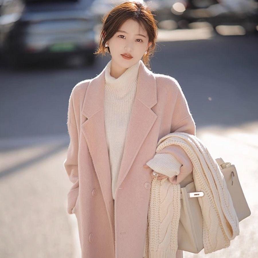 Осенне-зимнее женское мокко-коричневое кашемировое пальто в корейском стиле, повседневное, в стиле Майяр, элегантная шерстяная верхняя одежда 2XL