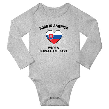 Born in America With a Slovakian Heart Baby Long Sleeve Romper (Gray 18 Months)