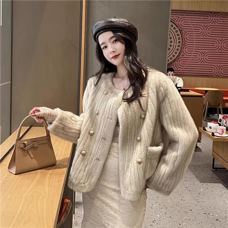 Осенне-зимнее новое европейское норковое флисовое двубортное пальто из искусственного меха норки, женское цельное пальто из композитного меха