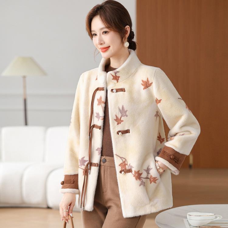 Осенне-зимнее пальто из искусственного норкового бархата для пожилых женщин, новый стиль, зимняя одежда для мамы, модная шерстяная куртка в китайском стиле 3XL