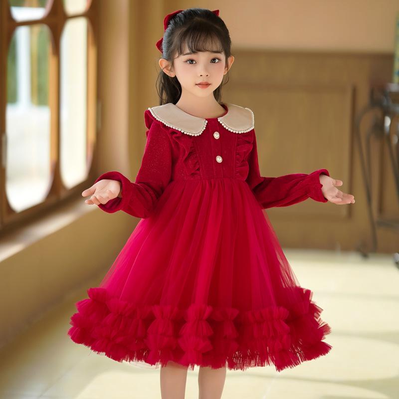 Осенне-зимнее платье принцессы для девочек, бархатная газовая пышная юбка, детское платье для малышей