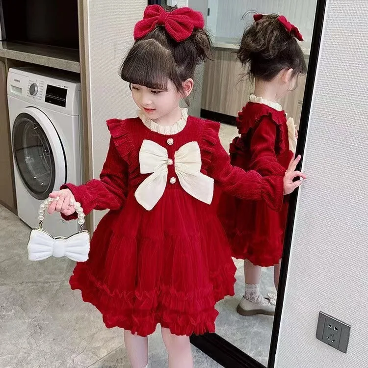 Осенне-зимнее платье принцессы с цветочным принтом для девочек, новое стильное пышное платье для маленьких девочек, милое и модное детское платье