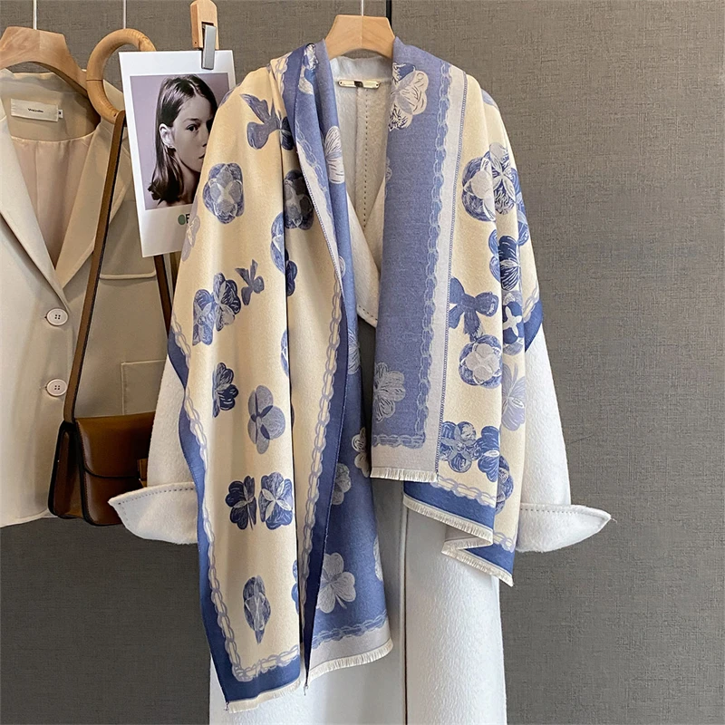 Осенне-зимнее теплое кашемировое шаль для путешествий, шарф, модное женское роскошное одеяло из пашмины с принтом, женское пончо Bufanda
