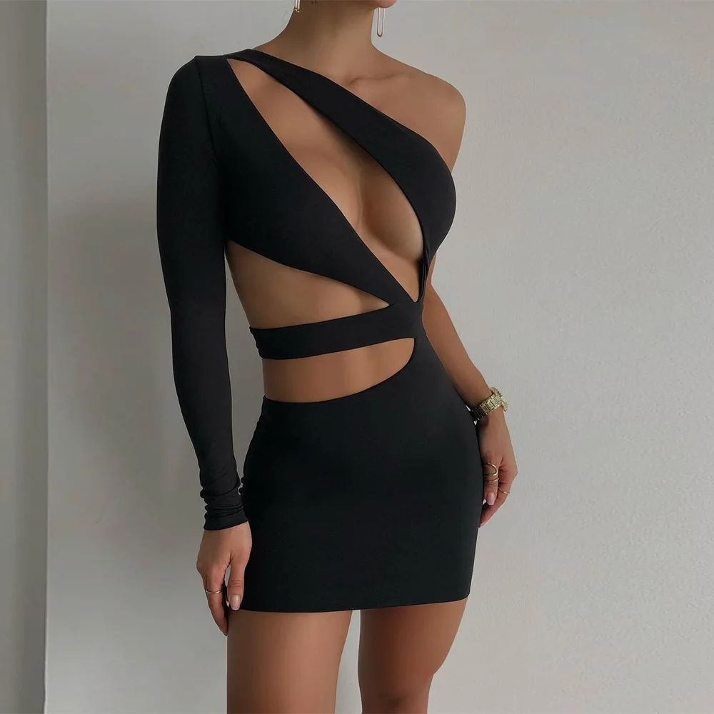 Осенне-зимние Новые товары, Двухслойное молочное шелковое платье с одним плечом и длинными рукавами, пикантное вечернее платье, юбка для же...