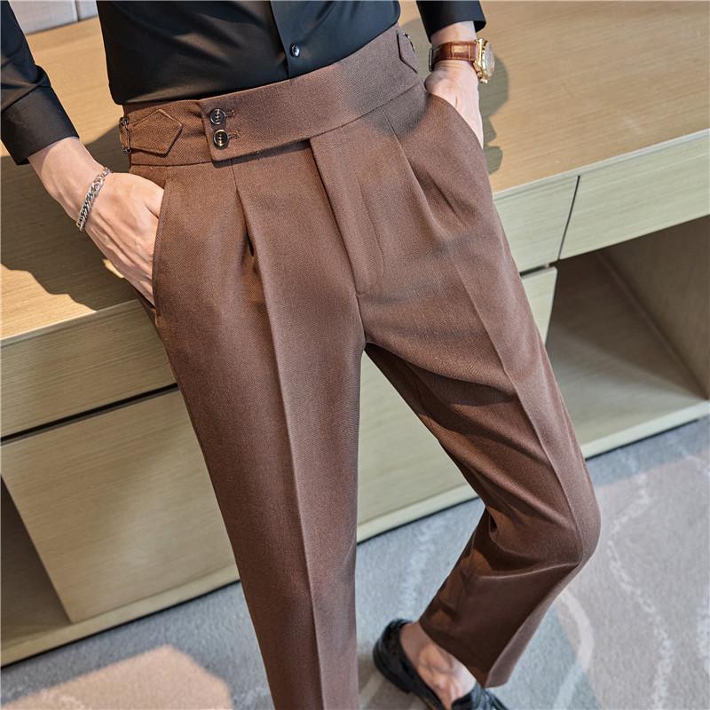 Осенне-зимние брюки с высокой талией, плотные, мужские, деловые, повседневные, формальные, мужские прямые брюки 32 кофейный