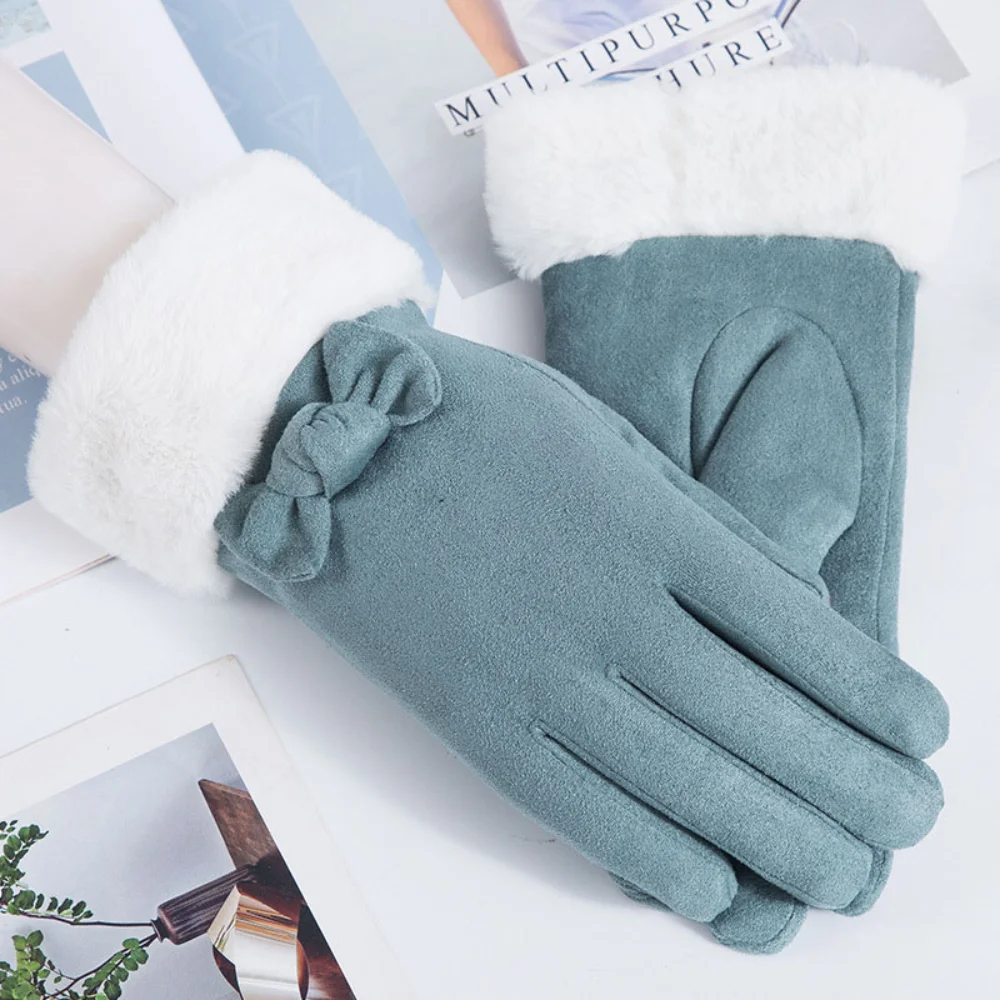 Осенне-зимние замшевые перчатки женские утепленные уличные спортивные перчатки однотонные простые меховые сохраняющие тепло перчатки для...