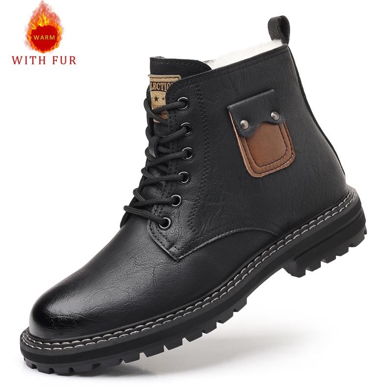 Осенне-зимние мужские ботинки Классический ретро-стиль Повседневные Деловые Офисные Уличные для мотоцикла Теплая кожаная обувь Горячая распродажа 44 чёрный