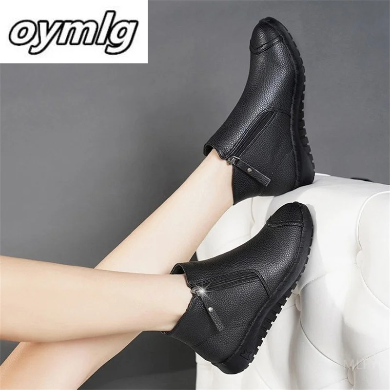 Осенне-зимние новые ботинки для мам из хлопка короткие ботинки с мягкой подошвой на плоской подошве женская обувь кожаная обувь Рабочая обу...