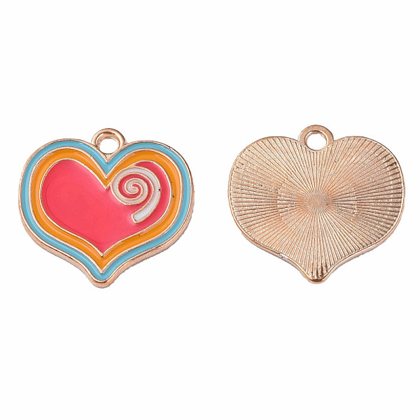 PandaHall Alloy Enamel Pendants, Cadmium Free & Lead Free, Heart, Light Gold, Orange Red, 19x20x1mm, Hole: 1mm Alloy+Enamel Heart
