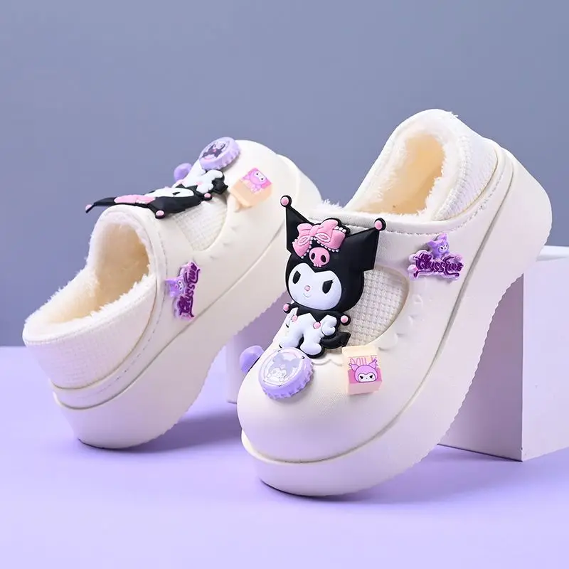 Осенне-зимние новые хлопковые тапочки Hello Kitty для девочек, Нескользящая водонепроницаемая теплая детская хлопковая обувь на толстой подошве для дома и улицы