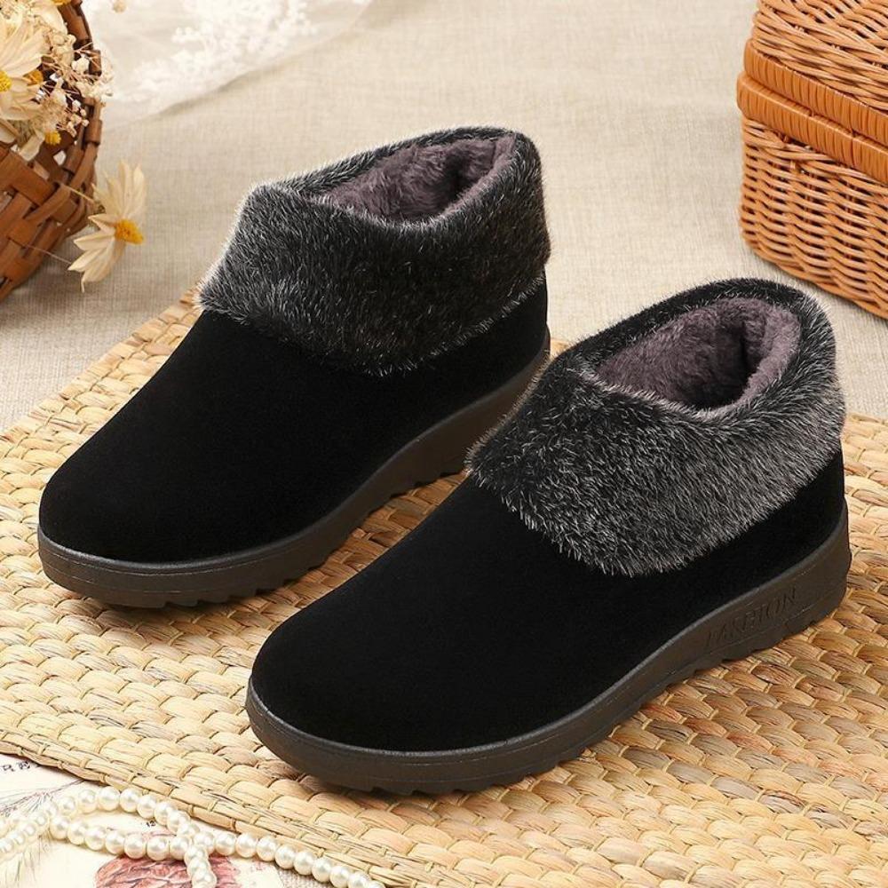 Осенне-зимние тканевые туфли, женские хлопковые туфли, теплые полусапожки на плоской подошве для мамы, теплые хлопковые туфли с плюшевой подкладкой 35 чёрный