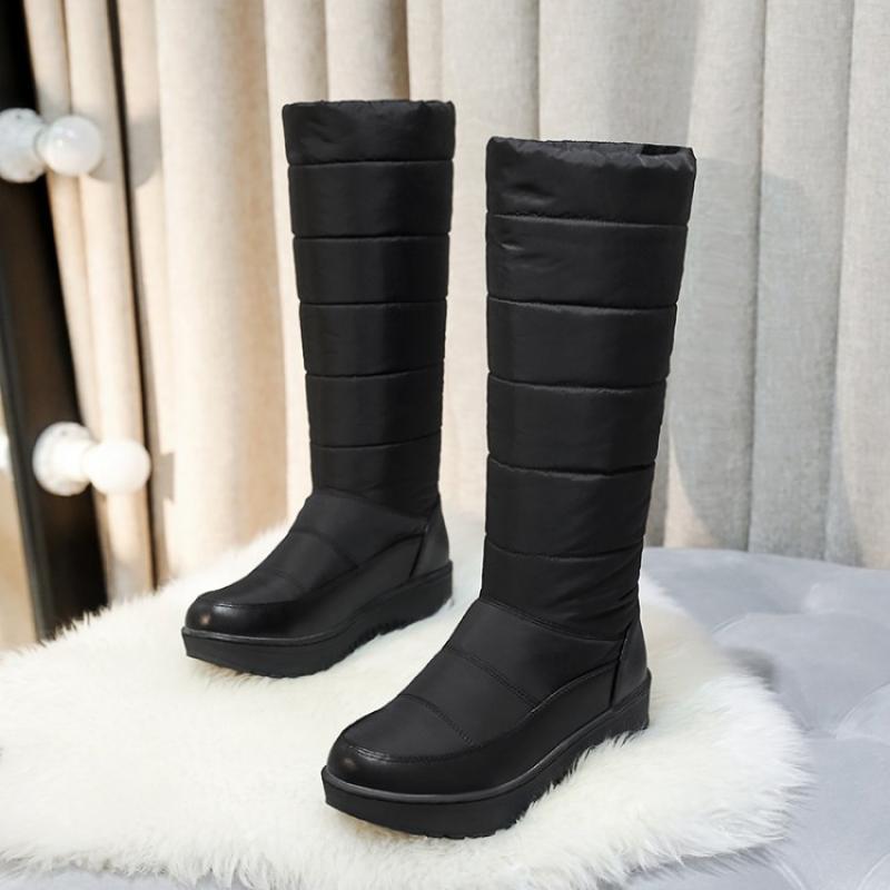 Осенне-зимние утепленные пуховые сапоги детские средней длины и длинные, на толстой подошве, нескользящие, водонепроницаемые, теплые и морозостойкие хлопковые сапоги 40 чёрный