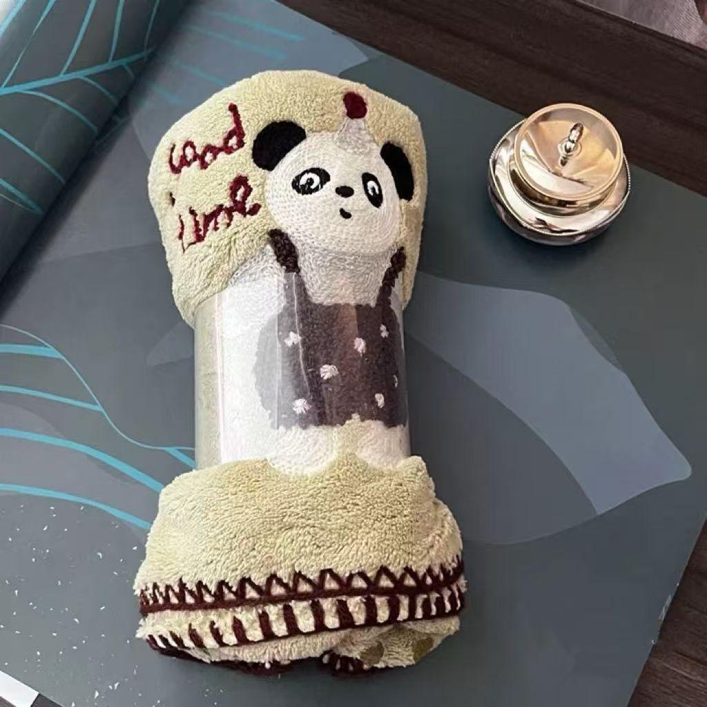 Осенне-зимние утолщенные полотенца из кораллового флиса, быстросохнущие, с вышивкой животных и в горошек, мягкий набор банных полотенец, полотенца в подарок на День благодарения, мочалки 35*75cm зелёный