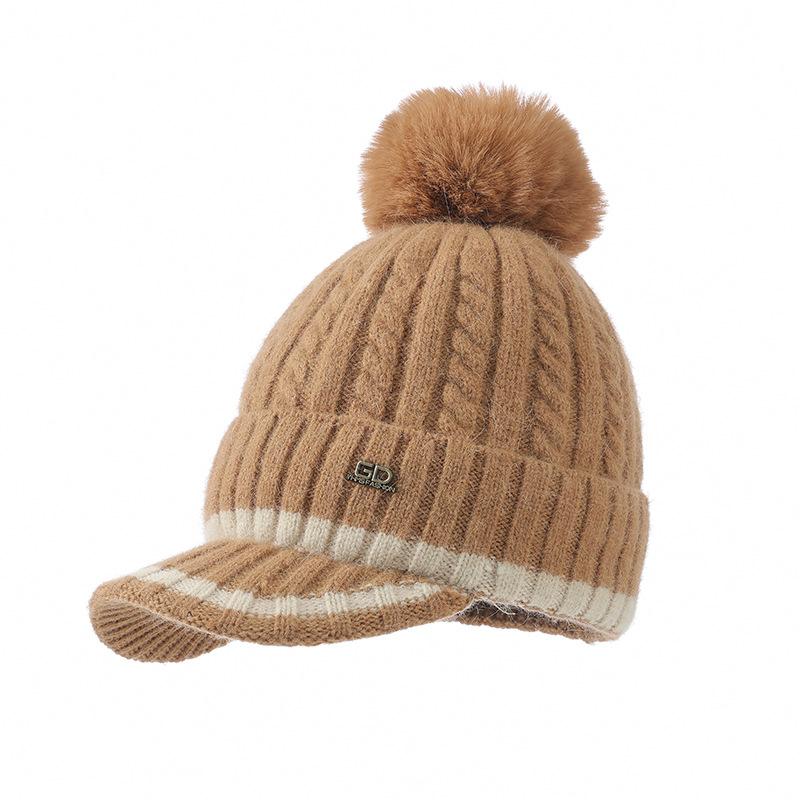 Осенне-зимние шапки для женщин Вязаная шапка с козырьком и бархатной подкладкой Защищающая от холода и теплая шапка Модная и универсальная шапка для защиты ушей Шерстяная шапка One Size