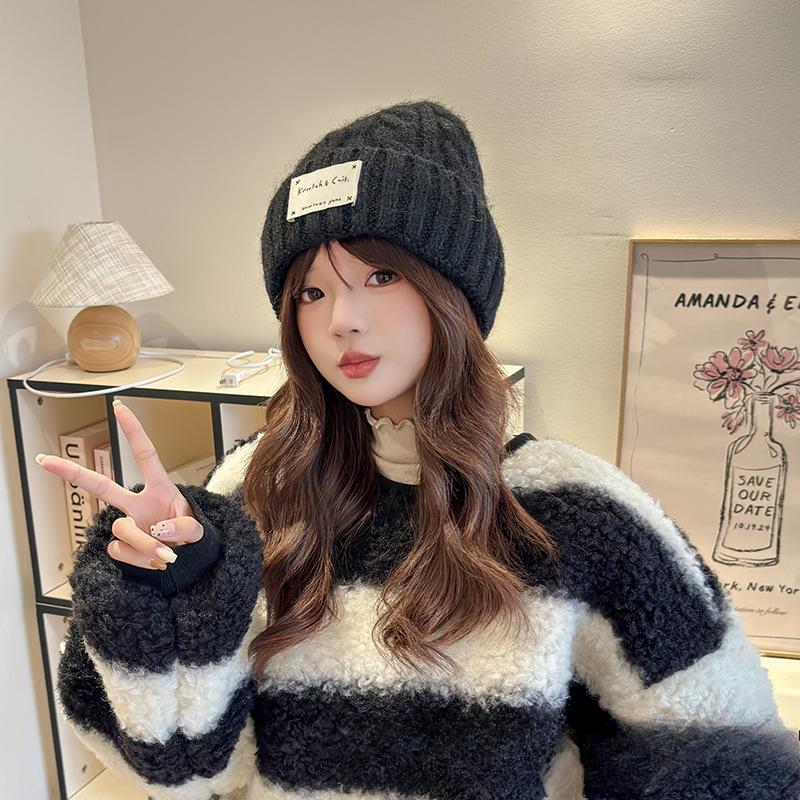 Осенне-зимние шапки для женщин Плюшевые Новые Корейские Вязаные Шапки Универсальные Теплые с Защитой Ушей Утепленные Модные Шерстяные Шапки one size
