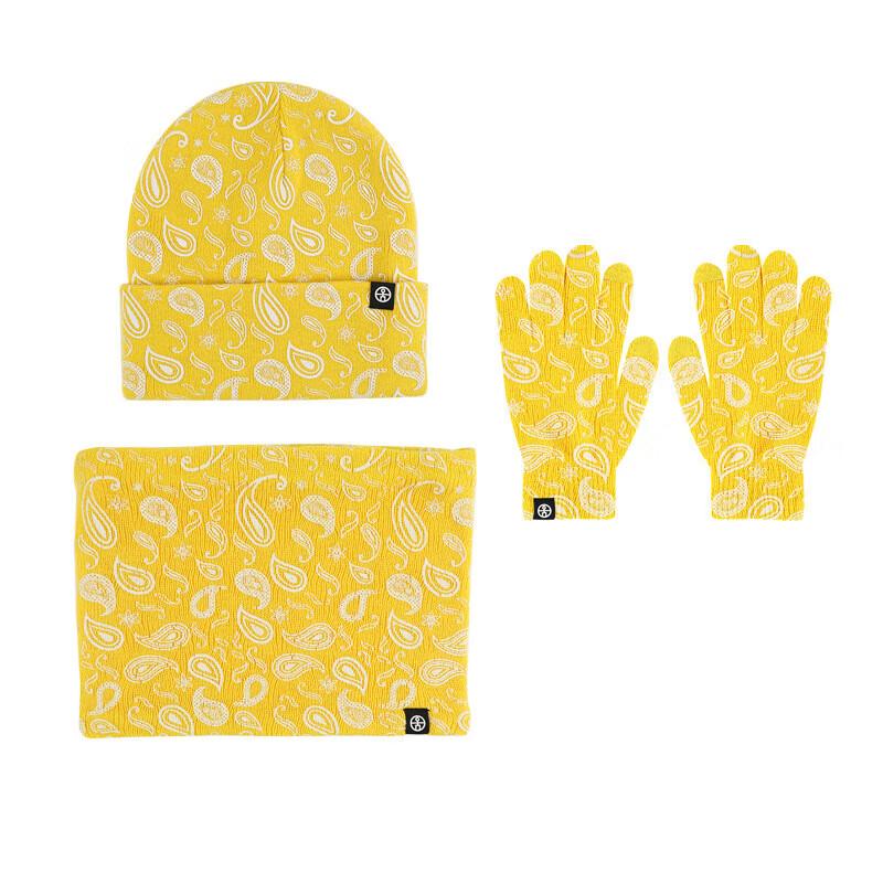 Осенне-зимний вязаный комплект пейсли: шапка, шарф и перчатки One Size