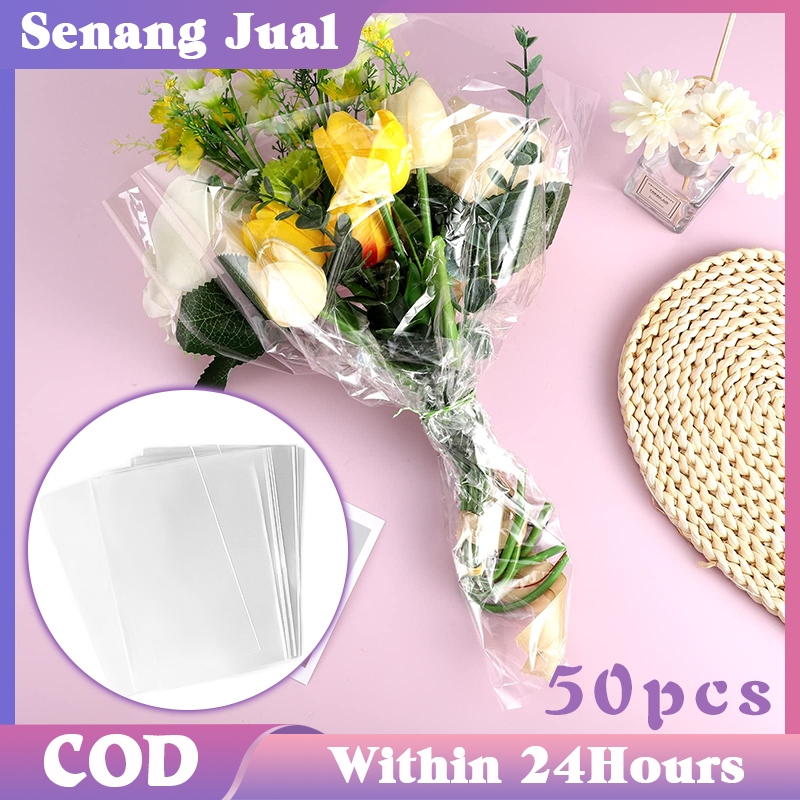 50Pcs 50X50CM Flower Wrapping Cellophane Transparan Buket Wrapping Kertas Bouqet Bening