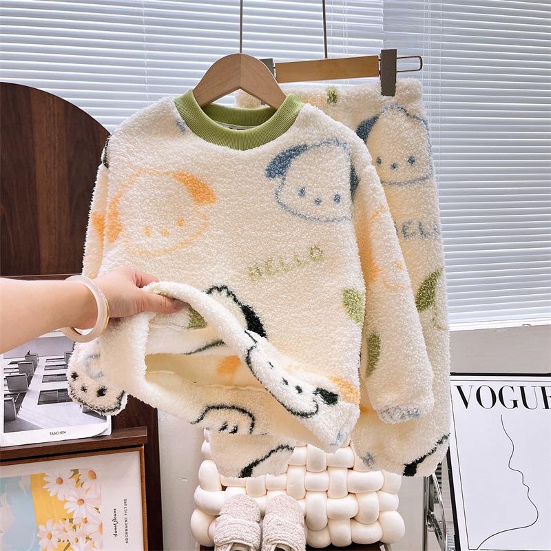 Осенне-зимний комплект пижам для девочек из 2 предметов с рисунком из мультфильма, фланель, мягкие топы для девочек, утепленные теплые штаны 80 зелёный