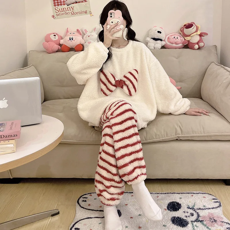 Осенне-зимний пижамный костюм для девочек, домашняя одежда с мультяшным принтом, женская одежда для дома, фланелевая одежда для сна, сохраняющая тепло, ночная рубашка из кораллового флиса