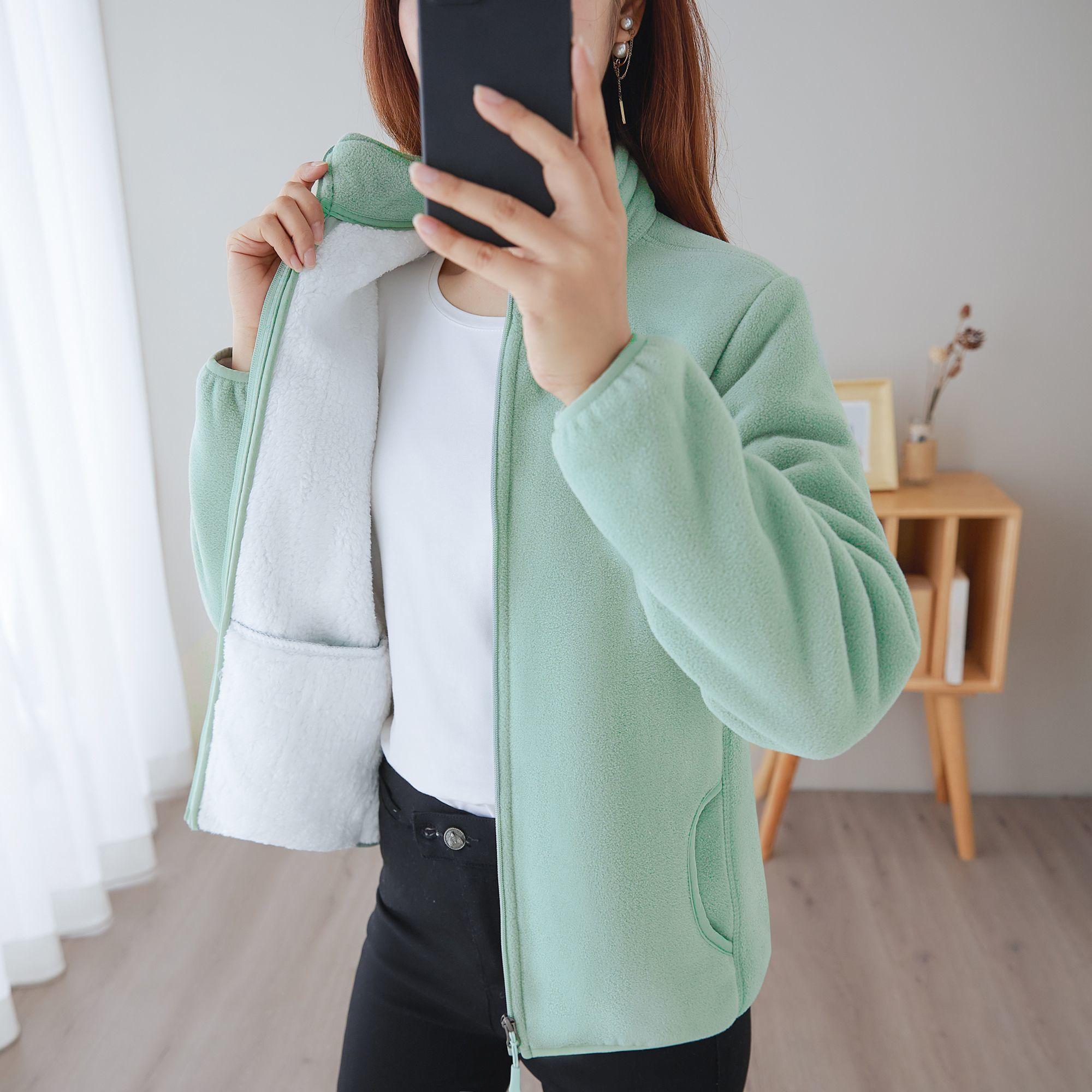 Осенне-зимний топ из полар-флиса для мам - Женская толстая теплая двусторонняя флисовая куртка свободного кроя с добавлением вельвета M светло-зеленый