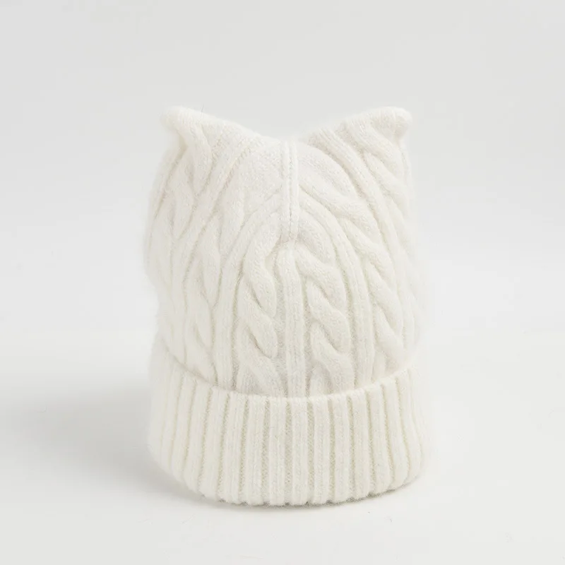 Осенне-зимняя Милая Шерстяная Шапка-бини с милыми ушками из ангоры и кроличьего меха Женская Корейская версия модная теплая Вязаная Шапка-бини
