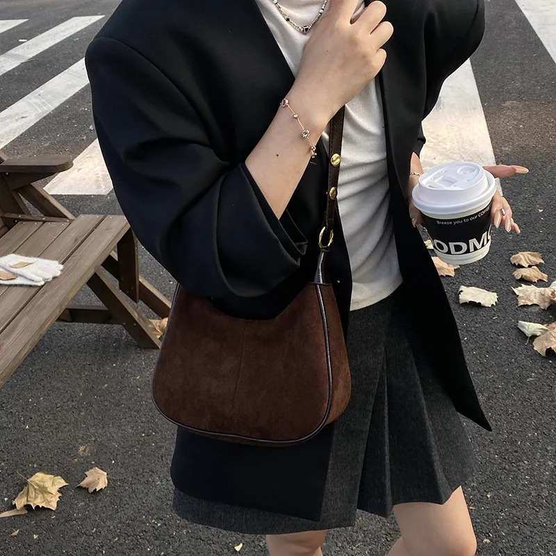 Осенне-зимняя винтажная сумка через плечо, универсальная сумка через плечо для женщин, модная сумка на ремне в стиле ретро, минималистичная сумка с верхней ручкой
