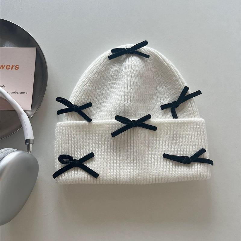 Осенне-зимняя вязаная шапка из кроличьей шерсти с серебряной этикеткой и узлом-бабочкой для детей Милая шапка Баотоу Универсальная вязаная шапка one size