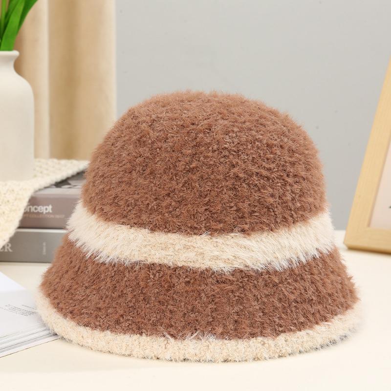 Осенне-зимняя вязаная шапка, теплая защита ушей, женская простая панама, плюшевая шапка, защищающая от холода, шапки и кепки (Женский) One size кофейный