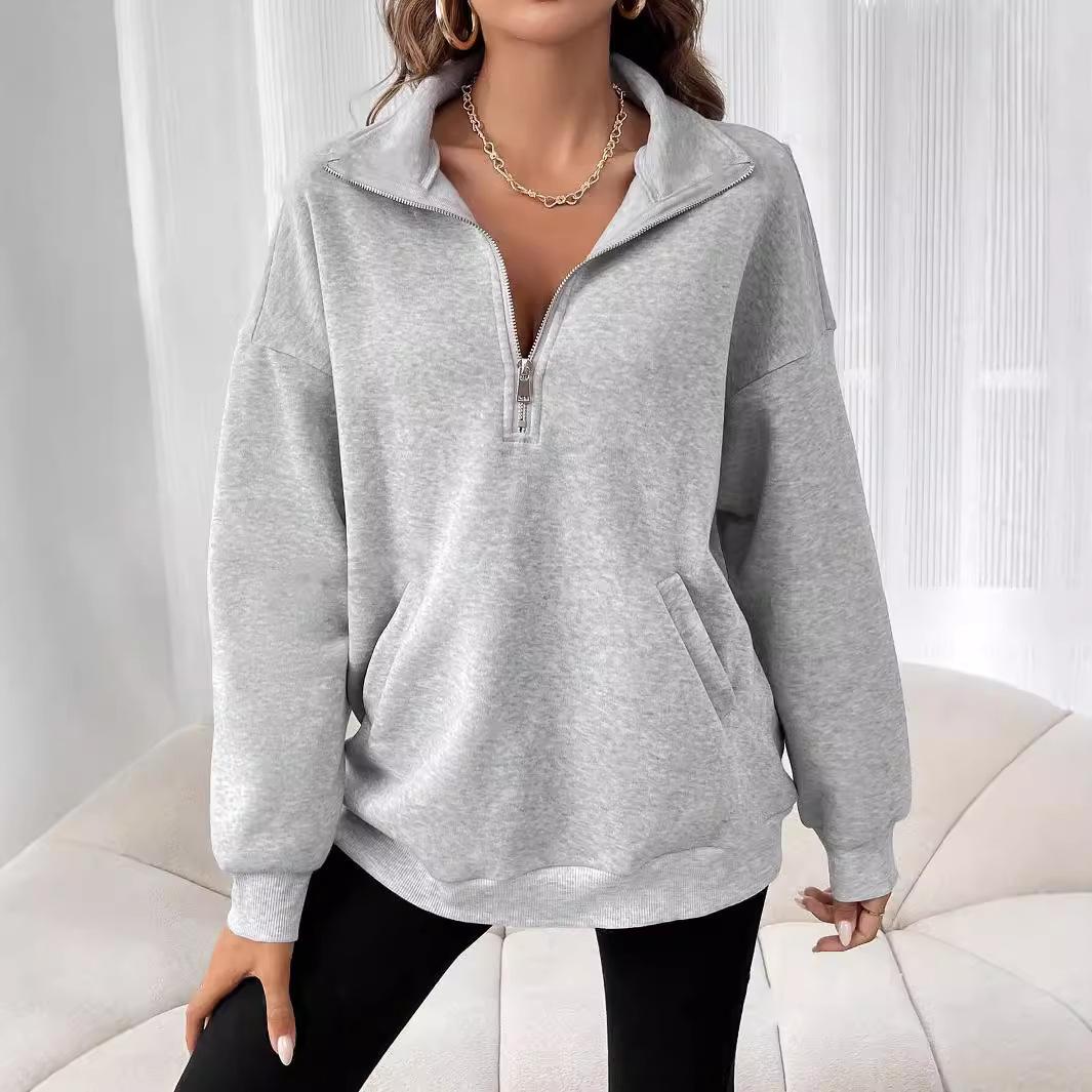 Осенне-зимняя женская модная однотонная повседневная толстовка с застежкой-молнией на лацкане 5XL светло-серый