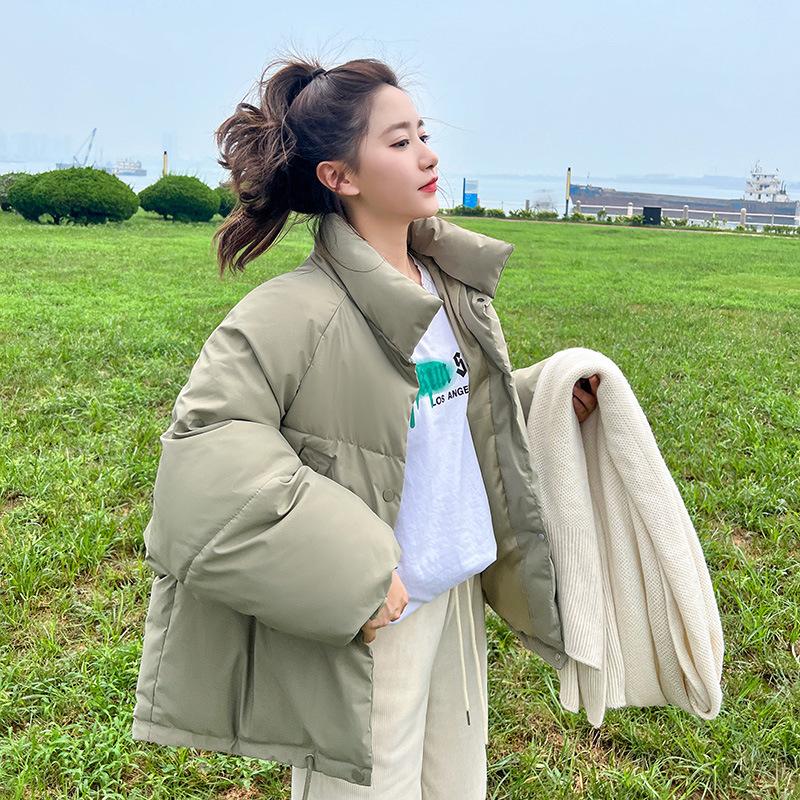 Осенне-зимняя женская однотонная свободная утепленная короткая женская куртка с воротником-стойкой, 5 цветов