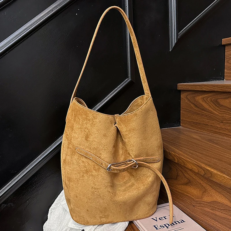 Осенне-зимняя женская сумка-тоут из мягкой кожи, большая замшевая кожаная пригородная сумка, модные сумки на плечо с серебряной пряжкой, сумка через плечо