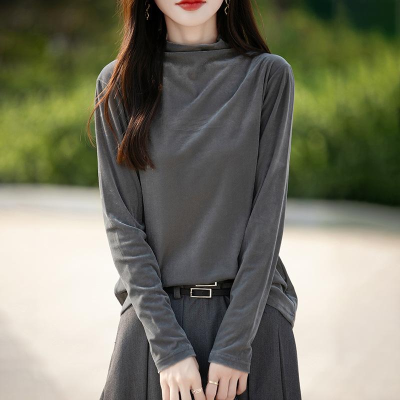 Осенне-зимняя женская теплая свободная рубашка с длинными рукавами, простая трикотажная рубашка, модные легкие роскошные внутренние топы XXL серый