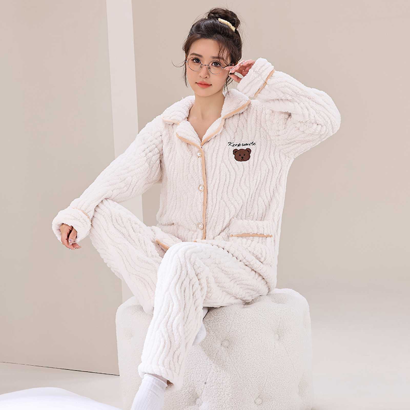 Осенне-зимняя коралловая бархатная пижама, новый кашемировый и толстый теплый двусторонний бархатный комплект, маленькая домашняя одежда с ароматным ветром, которую можно носить на улице M