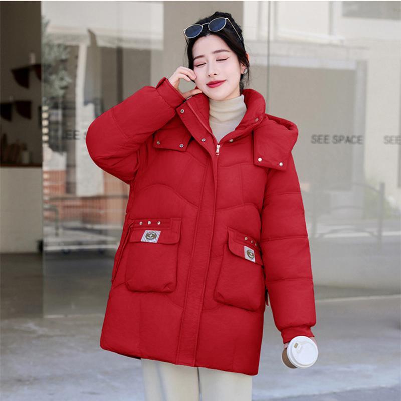 Осенне-зимняя корейская версия куртки с капюшоном, толстая хлопковая куртка-пуховик, средняя и длинная пуховая куртка, свободная верхняя куртка, хлопковая куртка M красный