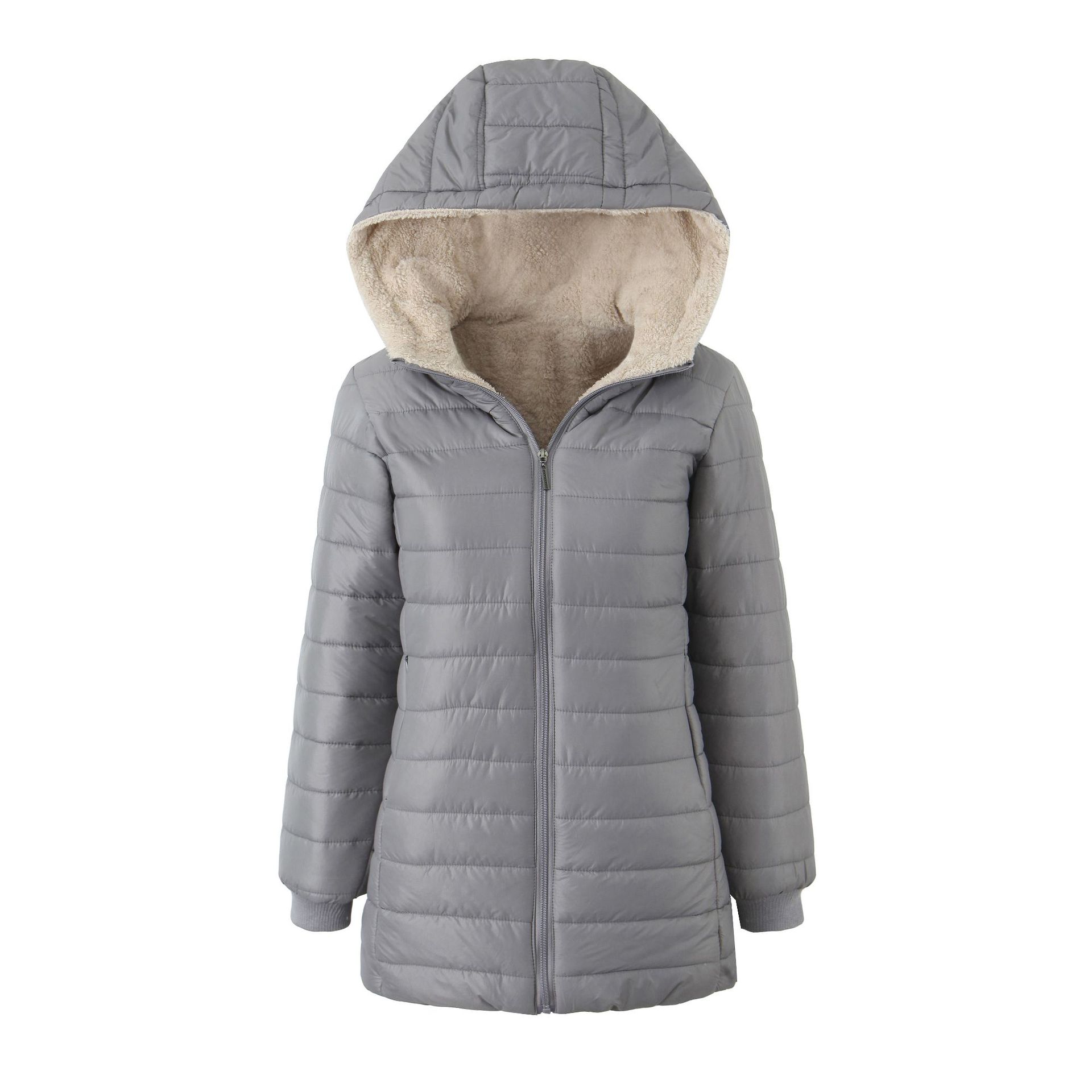 Осенне-зимняя куртка средней длины с капюшоном и хлопковой подкладкой, женская теплая куртка из овечьего флиса с хлопковой подкладкой, плюс флисовая куртка сверху XXXL серый