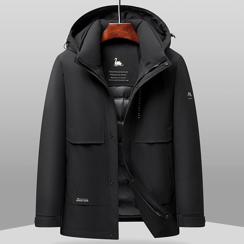 Осенне-зимняя куртка с капюшоном и подкладкой из гусиного пуха для людей среднего и молодого возраста, теплая куртка для работы в холодное время года 195 чёрный