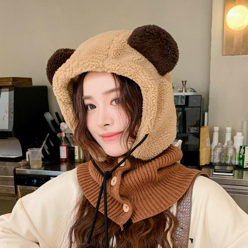 Осенне-зимняя милая шапка-медвежонок женская теплая защита для ушей плюшевая шапка вязаная шерстяная шаль шапка-пуловер
