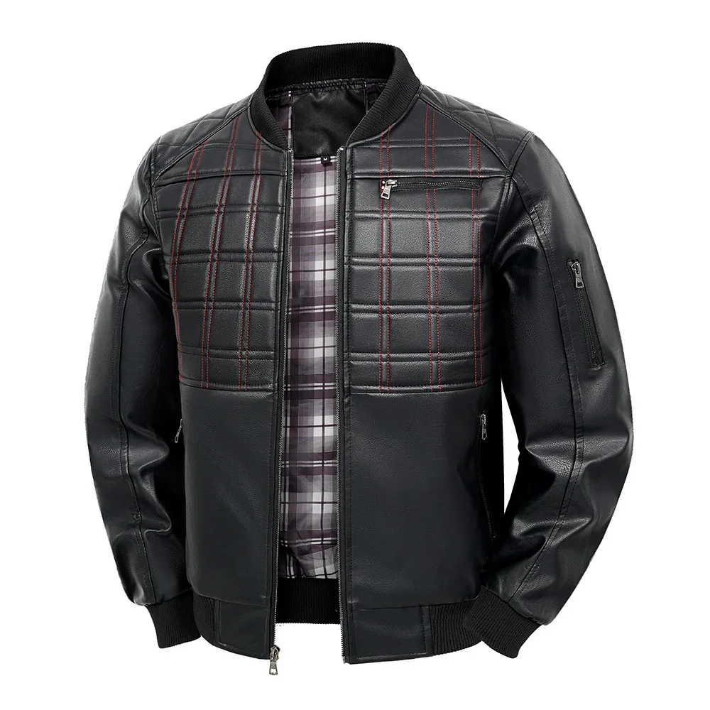 Осенне-зимняя мужская кожаная куртка, новая мотоциклетная панк-плед в стиле пэчворк, мужское пальто с воротником-стойкой и длинным рукавом на молнии, мужская верхняя одежда