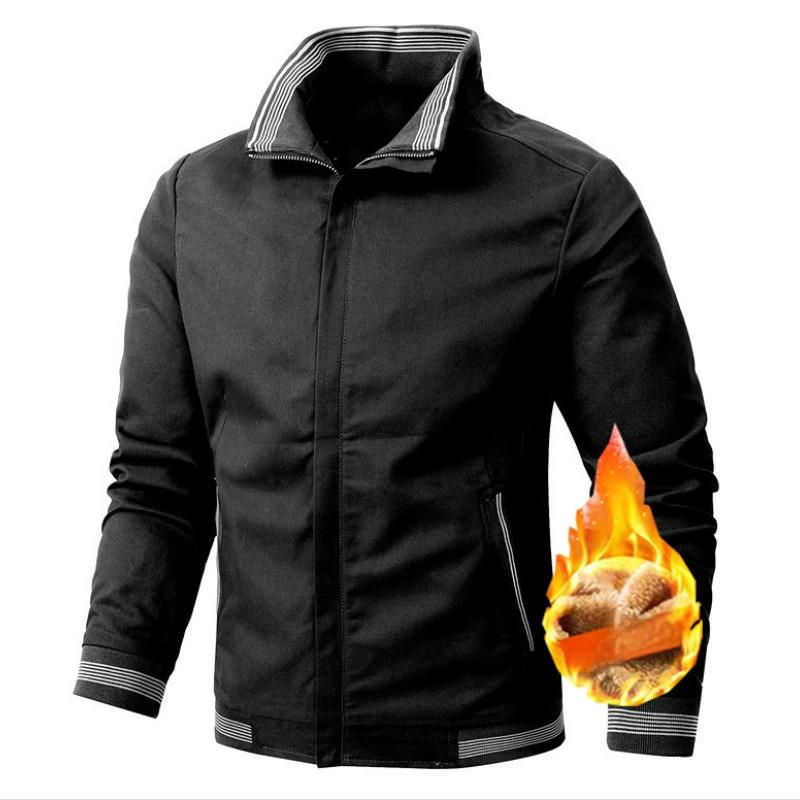 Осенне-зимняя мужская модная куртка-авиатор из флиса, утолщенная теплая бейсбольная куртка, однотонная, на молнии, большой размер S чёрный