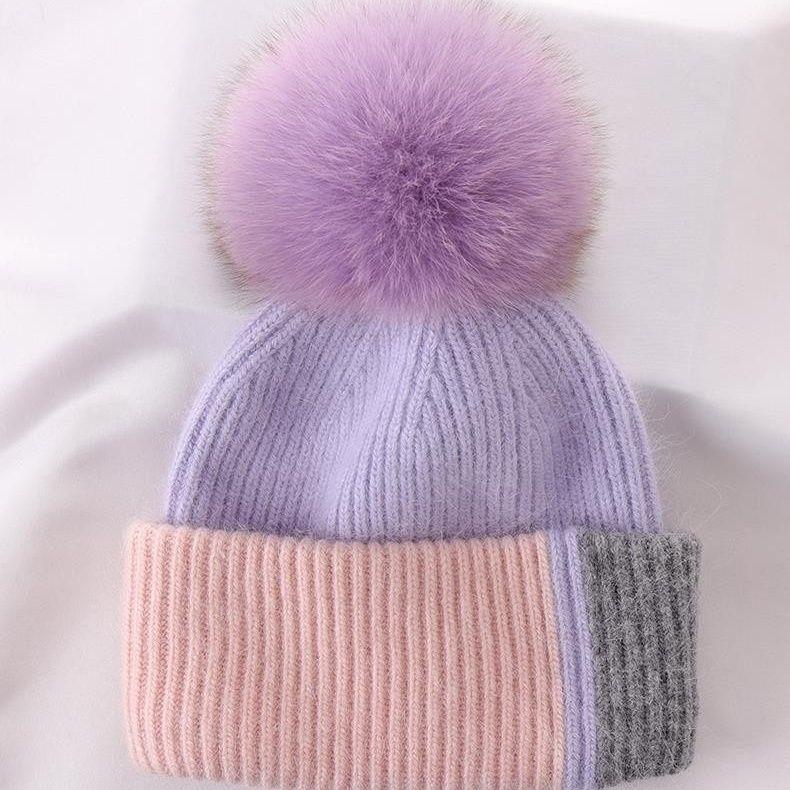 Осенне-зимняя мягкая теплая пушистая меховая помпоновая зимняя шапка для женщин, вязаная шапка из ангоры, женская вязаная шапка-чепчик One Size фиолетовый