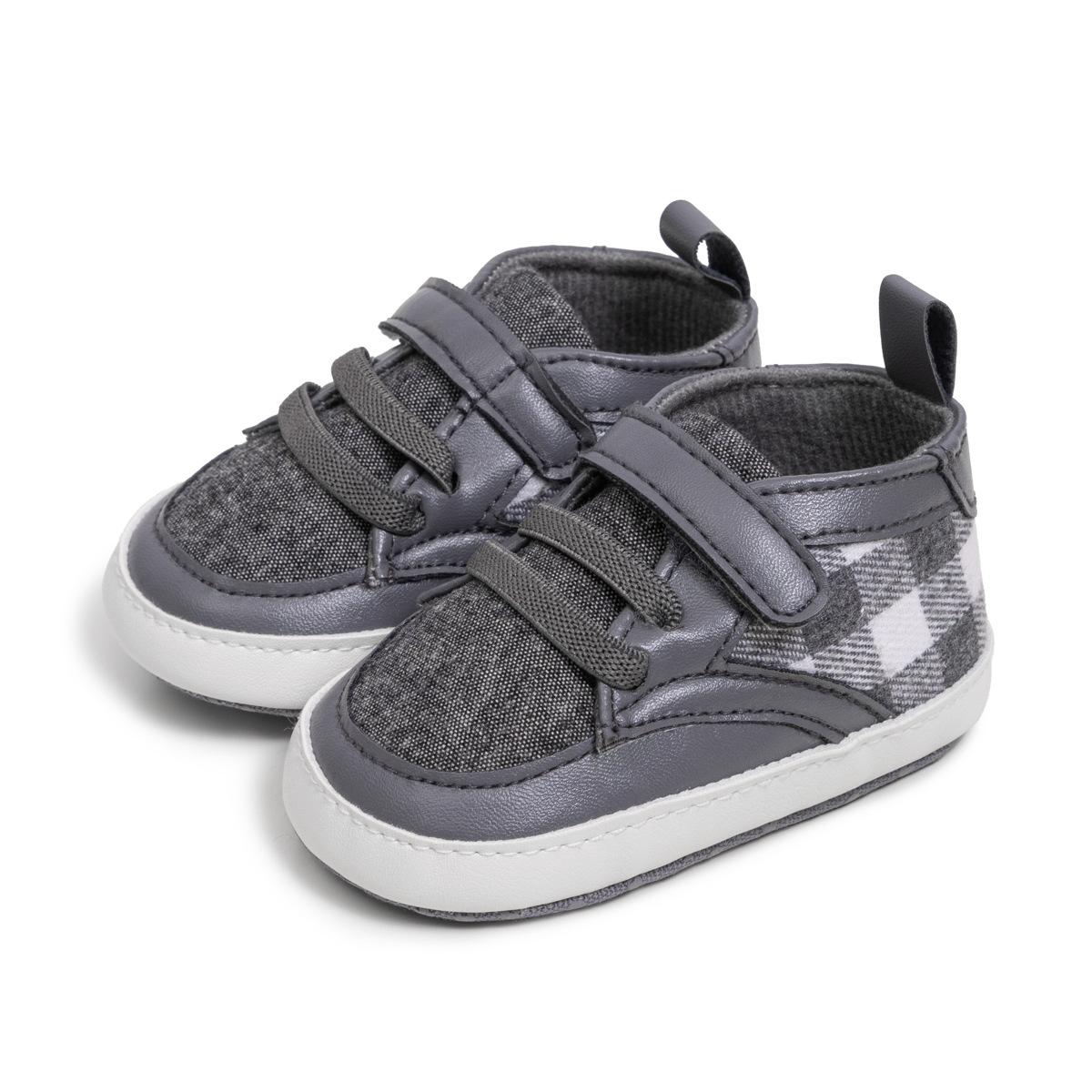 Осенне-зимняя новая детская обувь в клетку, удобная детская обувь с мягкой подошвой на липучке, обувь для малышей, повседневная обувь с высоким берцем 13 серый