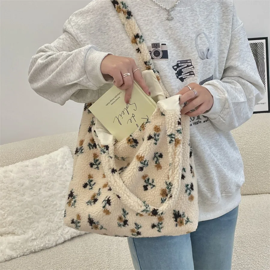 Осенне-зимняя новая модная милая плюшевая сумка с плюшевыми цветами для поездок на работу сто женских сумок на одно плечо большой вместимости